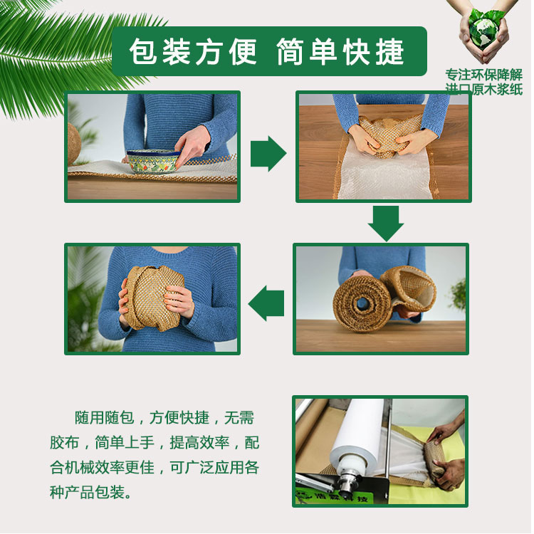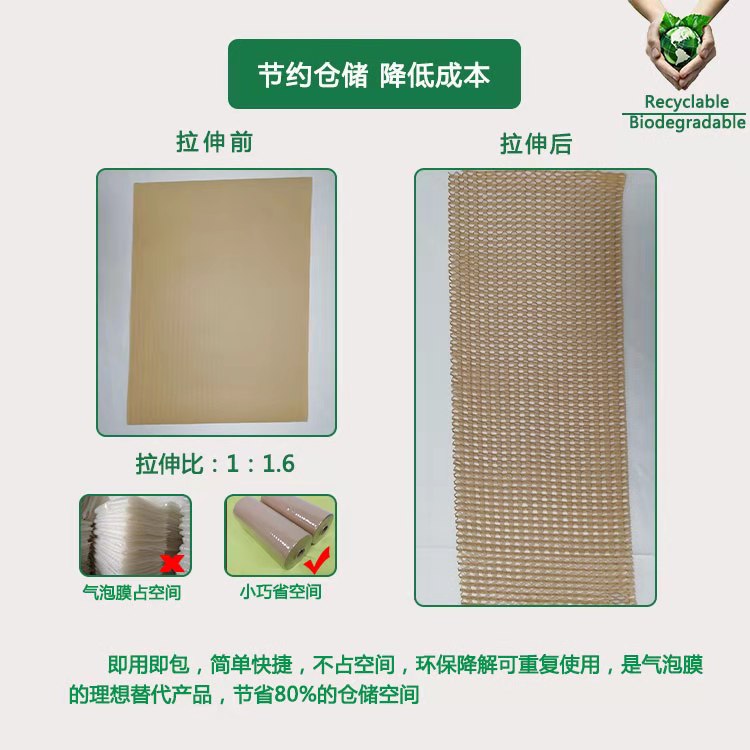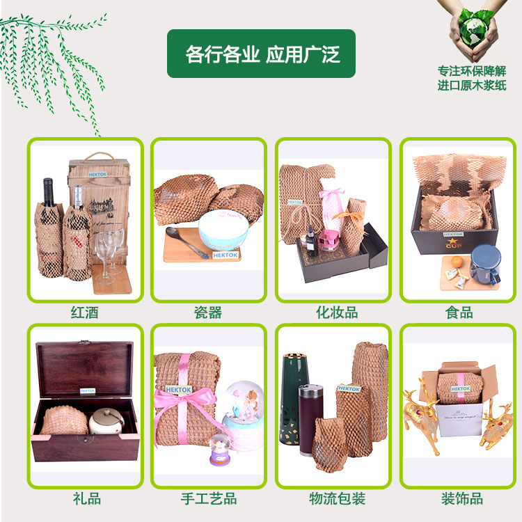 我们专注环保包装材料、蜂窝包装纸,各类缓冲包装材料等产品为广大客户群提供“以纸代塑”的包装改革方案,产品可以再循环利用,或是在自然界中降解;可以按需生产不同规格和颜色的片材、卷材、制袋和个性化设计包装,为客户量身定制适用高品质的产品。
