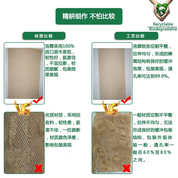 我们专注环保包装材料、蜂窝包装纸,各类缓冲包装材料等产品为广大客户群提供“以纸代塑”的包装改革方案,产品可以再循环利用,或是在自然界中降解;可以按需生产不同规格和颜色的片材、卷材、制袋和个性化设计包装,为客户量身定制适用高品质的产品。